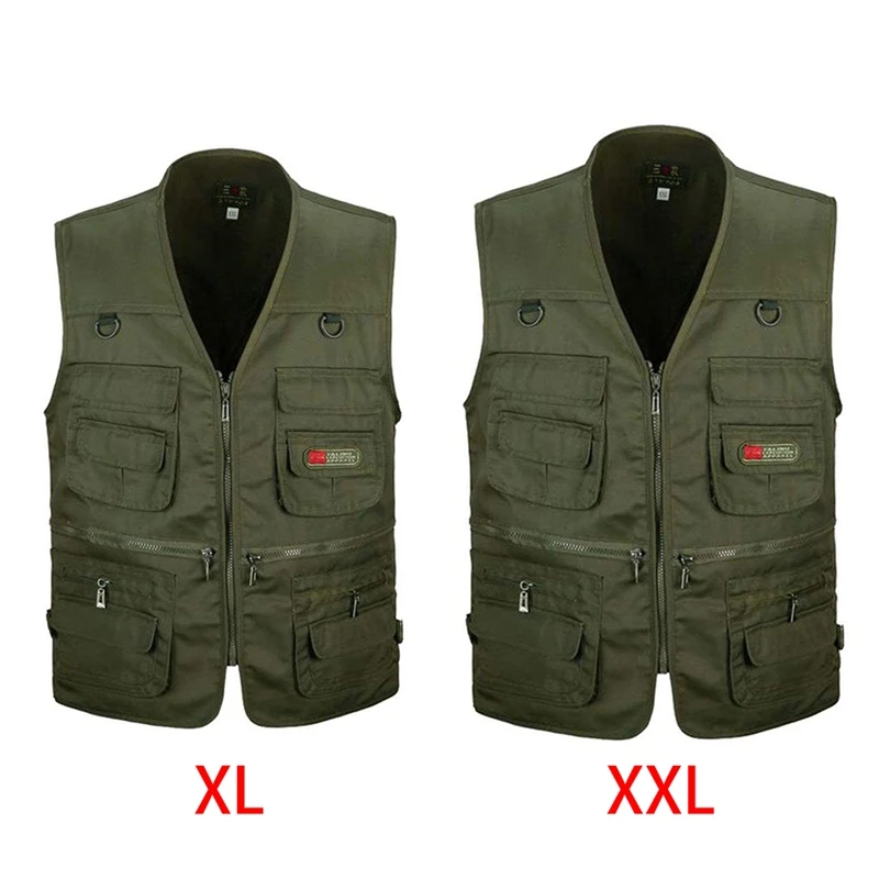 2Pcs Men's Fishing Vest with Multi-Pocket Zip for Photography / Hunting / Travel Outdoor Sport - Gr