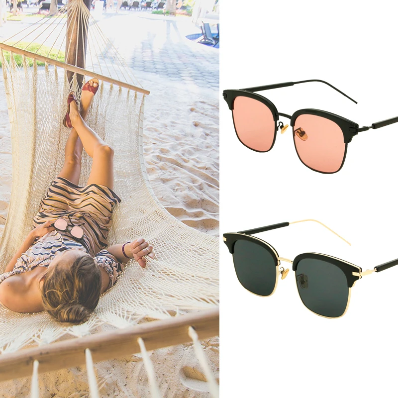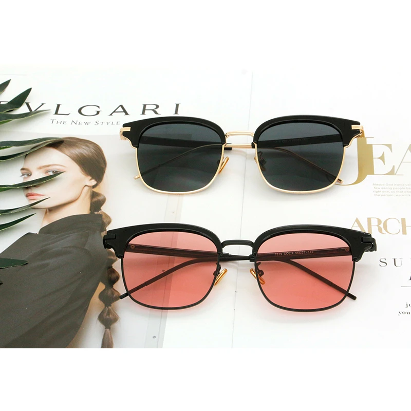 Vintage Metal Half-Rim Sunglasses Women 2018 Tidien Retro Plastic Mirror Shopping Fishing Classic E