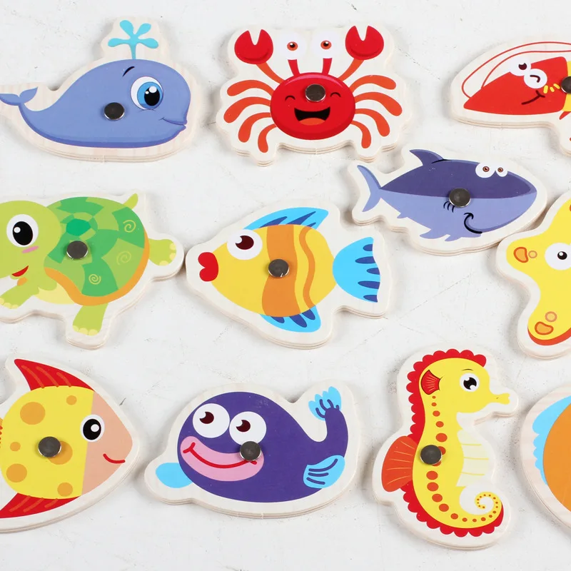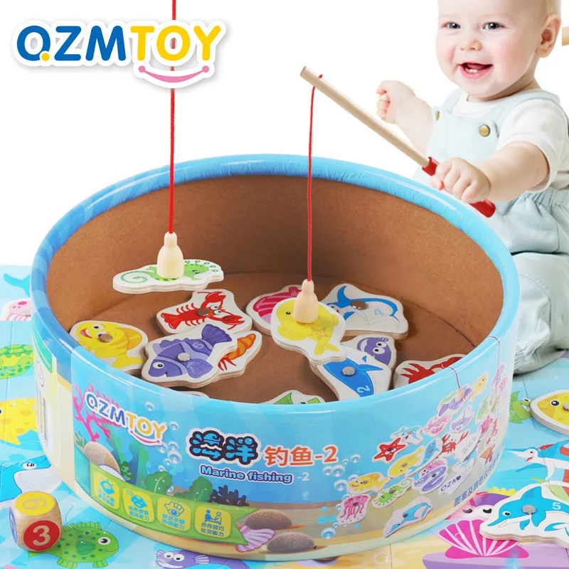 HOT Sale QZM Magnetic Fishing Toys Wood Parent And Child Model Play House Jigsaw Puzzle Wooden Children Fish