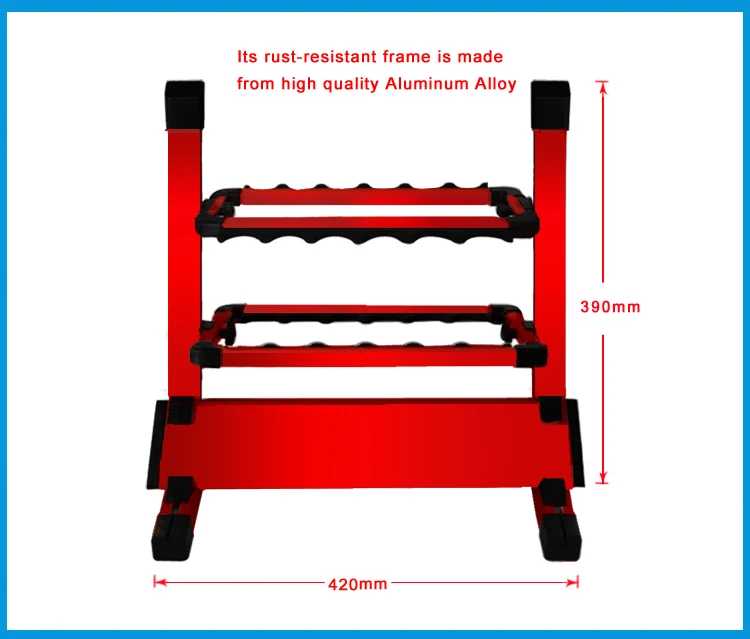 Aluminum Alloy Red Fishing Rod Rack Holder Stand Support Tackle for Fishing Rod Set Capacity 12pcs